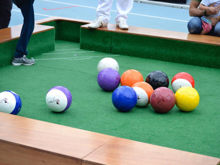 Whether Football Billiard, Snook Pool, Foot Pool or Snook Football..., there are different phrasing for this new fun sport which conquers actually the world and which is a combination of billiard and football. You play on an oversized pool field with size 4 or 3 footballs. The balls are same marked like real billiard balls i.e. seven half and seven full plus the black eight. These balls have a regular bounce, while the white ball has a low bounce. You must not be a good soccer player, it’s more about tactics, accuracy and fun.